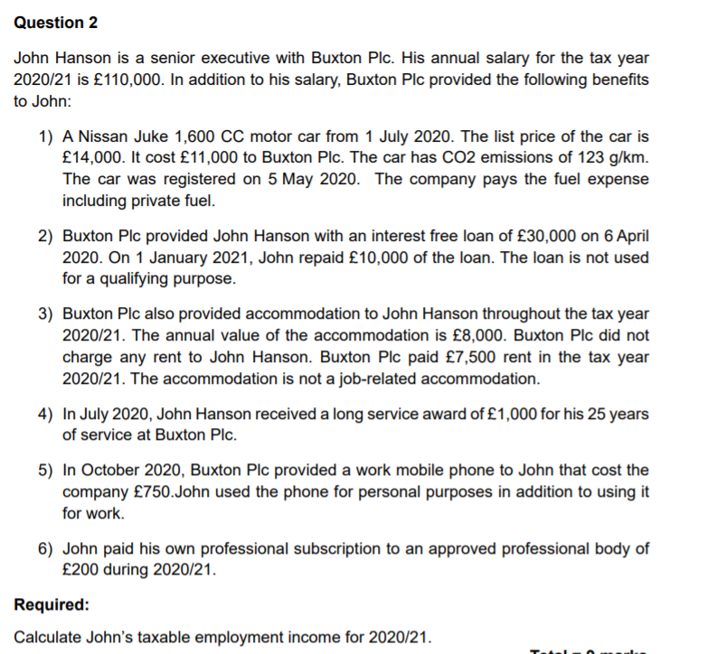 Solved Question 2 John Hanson Is A Senior Executive With Chegg Com